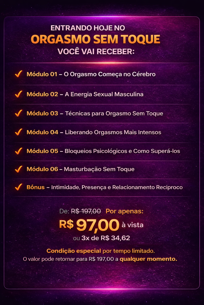 ✔ Estrutura prática para desenvolver orgasmo sem toque, usando respiração, foco e sensibilidade corporal aplicada